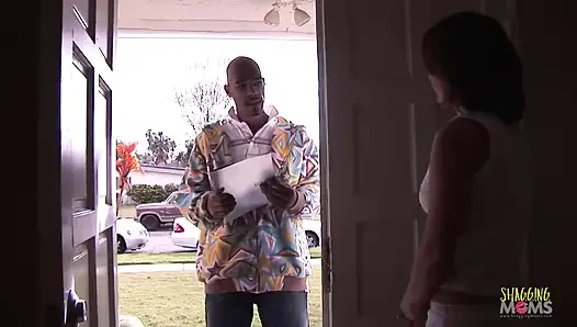 Evde yalnız ev hanımı zenci bir yabancıyı onu sikmesi için davet ediyor